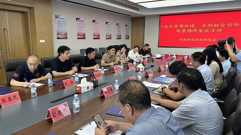 9月27日上午,滨海街道政协委员联络室组织部分区政协委员围绕“优化营商环境 共助融合创新”专题调研活动。